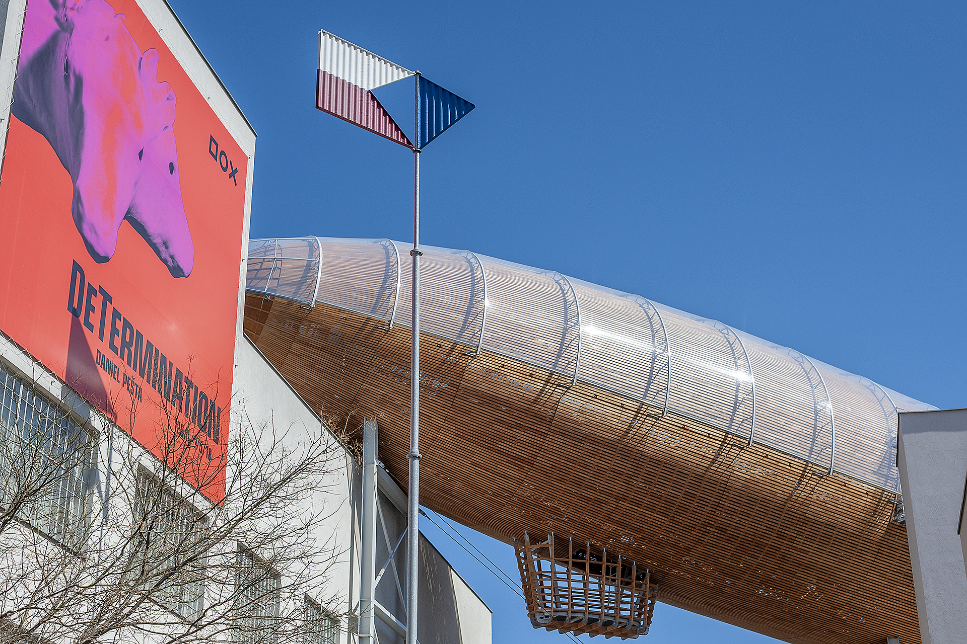 DOX-nykytaiteen keskus Poupětova-kadulla on vierailun arvoinen. Jos ei halua ostaa lippua vaihtuviin näyttelyihin, museokauppaan ja kahvilaan pääsee ilmaiseksi. Kaupasta löytää todella mielenkiintoisen valikoiman tuotteita, designia ja käyttöesineitä. Kahvilan terassillta voi katsella tilataideteosten lisäksi naapuritalojen kattopuutarhoihin.